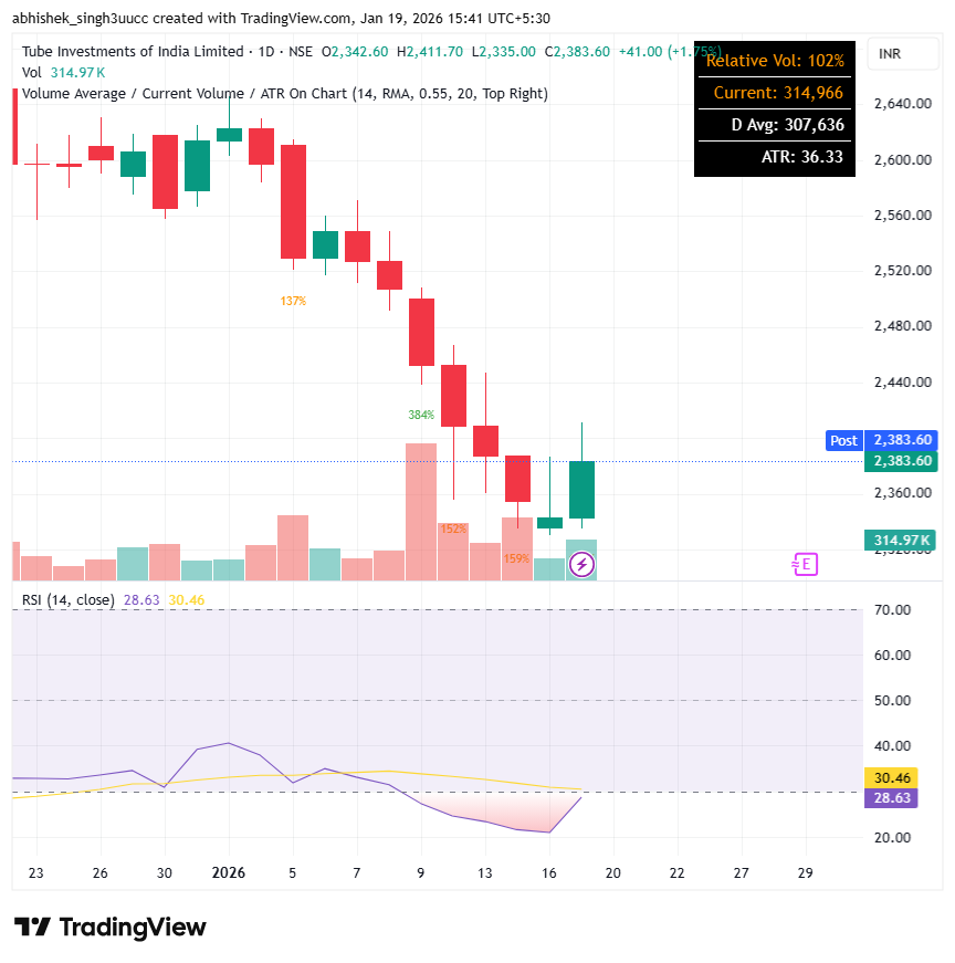 With a market capitalization of Rs. 46,019 crores on Monday, the stock closed at Rs 2,380 apiece, with an RSI of 28.63, indicating that it is in the oversold zone, offering the potential for an upside bounce.