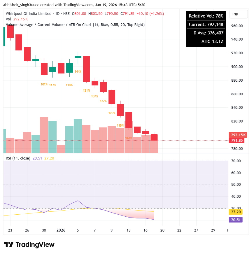 With a market capitalization of Rs. 10,040 crores on Monday, the stock closed at Rs 792 apiece, with an RSI of 20.51, indicating that it is in the oversold zone, offering the potential for an upside bounce.