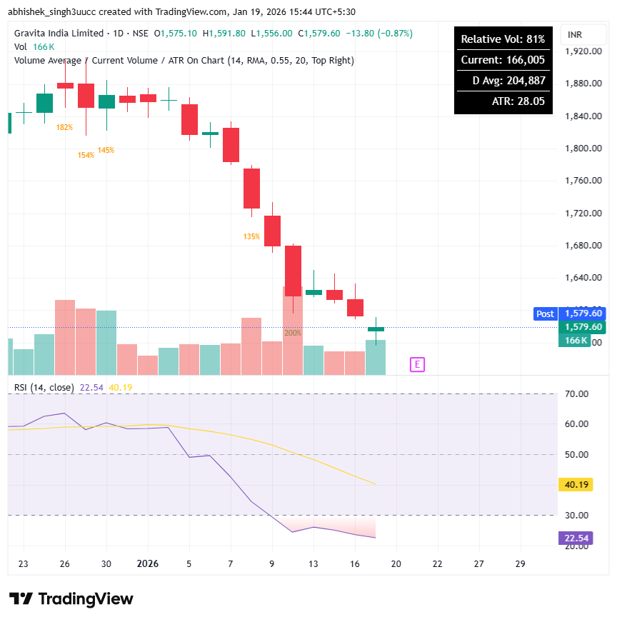 With a market capitalization of Rs. 11,655 crores on Monday, the stock closed at Rs 1,579 apiece, with an RSI of 22.54, indicating that it is in the oversold zone, offering the potential for an upside bounce.