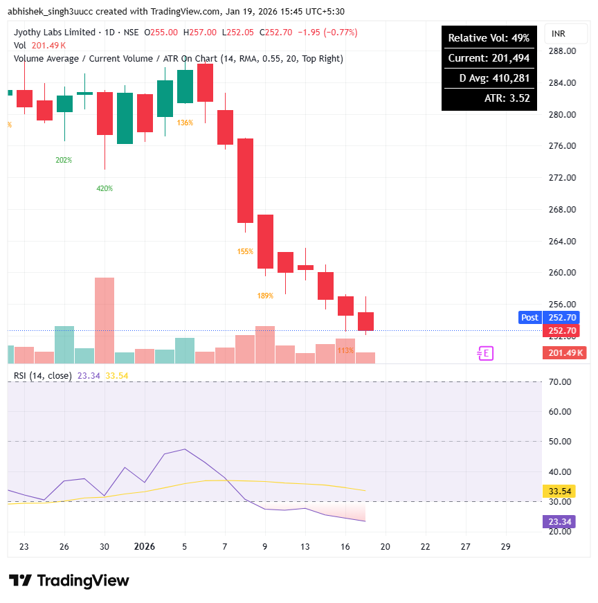 With a market capitalization of Rs. 9,291 crores on Monday, the stock closed at Rs 253 apiece, with an RSI of 23.34, indicating that it is in the oversold zone, offering the potential for an upside bounce.